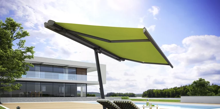 The Planet is a great and unique option to shade an outside space where a wall fixing isn’t possible. The Planet is securely fixed into the ground but still offer a huge amount of flexible shading. The awning can be rotated 335 degrees with the flex version to follow the sun all through the day.