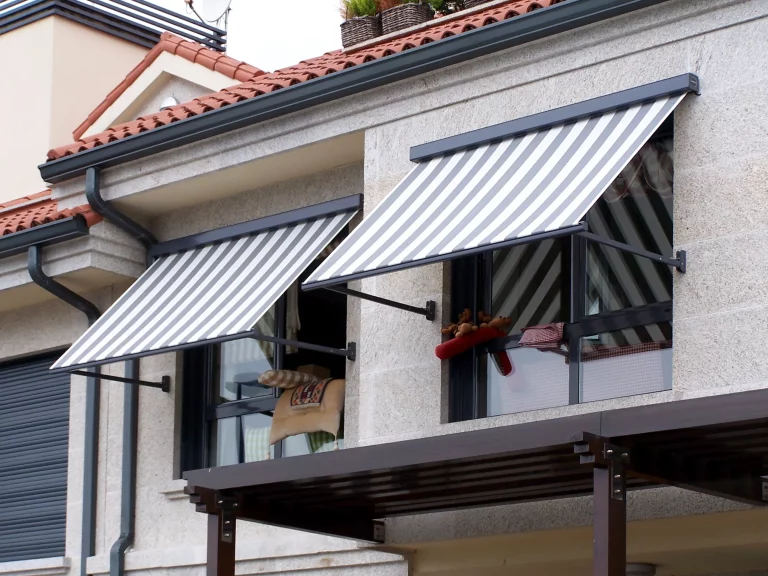 Drop-arm cassette awnings are suitable as sun protection for windows as well as balconies. The use of drop arms with high-quality stainless steel gas springs creates optimal cover tension. The fully enclosing cassette protects the fabric cover perfectly and the small cassette profile provides a discreet look that matches any building.